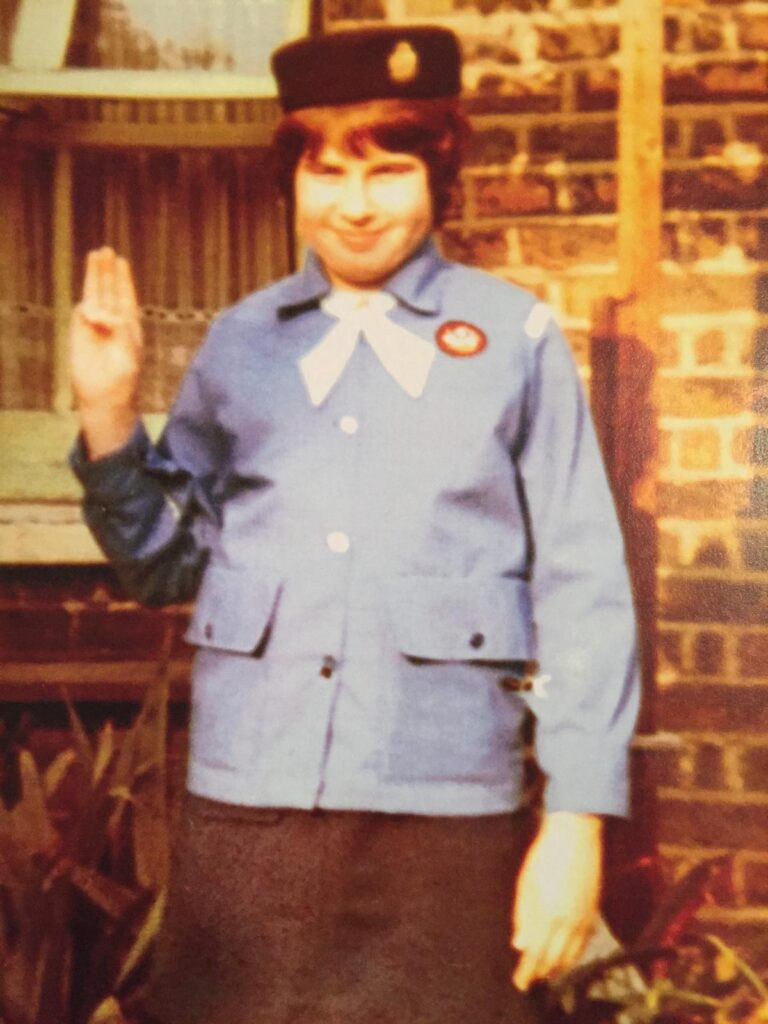 While at Alma School, Ann was introduced to the Girl Guides: ‘The 3rd North Bermondsey Group – Forget-Me-Not Patrol,’ she recalls with her chin up and shoulders back. ‘I loved being a Guide,’ adds the woman who, many years later when her own daughter Katherine joined, marched right back into that world by helping out at camp before then becoming a Guide Leader, and the District Commissioner… Ann would still be there if it wasn’t for her mother’s current health problems.