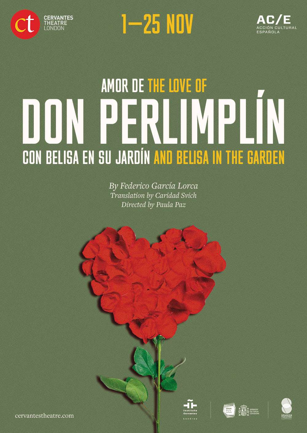 But tragedy explodes on the wedding night when, despite Perlimplín’s confession of his love for Belisa, she falls for another man with whom she is having a passionate romance. Aware of the deception, Perlimplín will have to decide how to respond to this treachery.