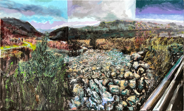 You have to see it to get the full effect; I’ve seen it and it is quite amazing. The artist adds that “the paintings exhibited on the Art Trail weekend relate quite strongly to the new book, with the view of landscape fragmented into a diversity of ways of perceiving and representing.”