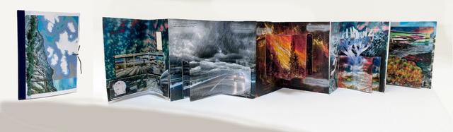 A sculptural leporello of double-sided pop-ups on two sides allowing the viewer to walk around the work, giving a 3 dimensional aspect.”