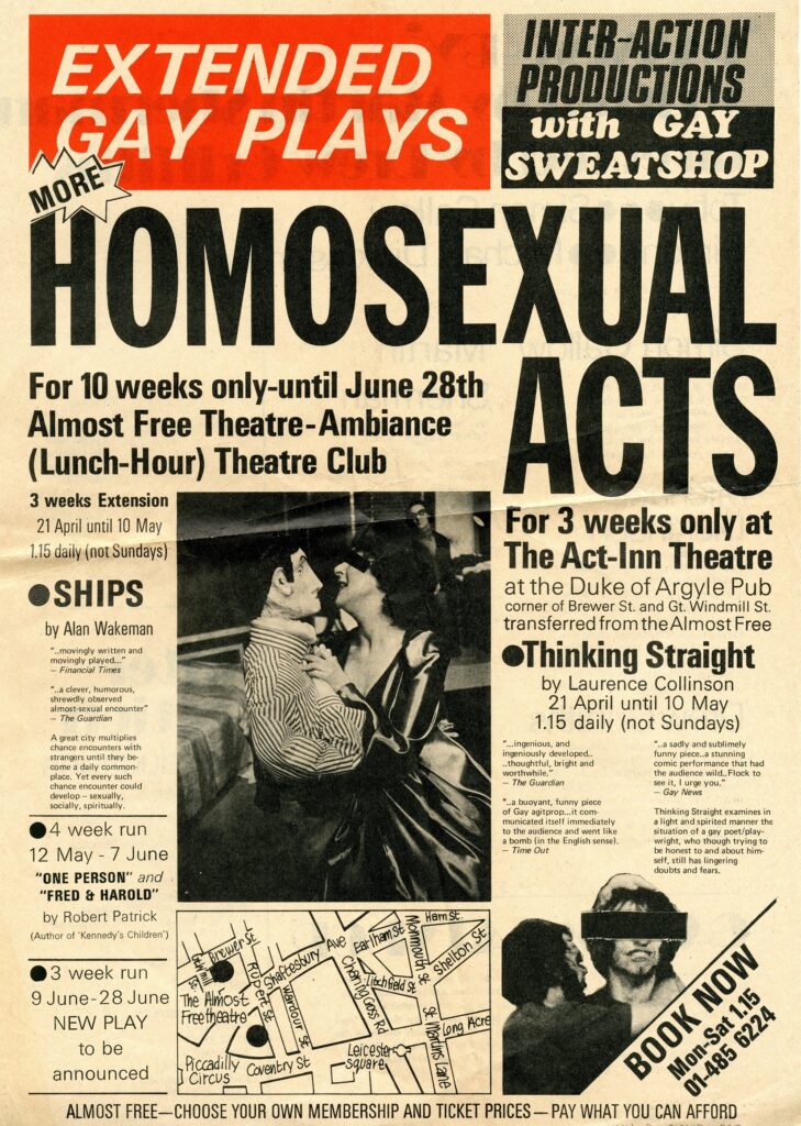 Marking the 50th anniversary of Homosexual Acts, the first official Gay theatre season in Britain which took place in 1975 at London’s Almost-Free Theatre, Radical Rediscovery: Homosexual Acts & Beyond, a new exhibition is set to interrogate and celebrate Lesbian and Gay theatre’s early years via an array of posters, flyers, photos, magazines, props, set models, costumes, books, original footage and interviews with key participants.