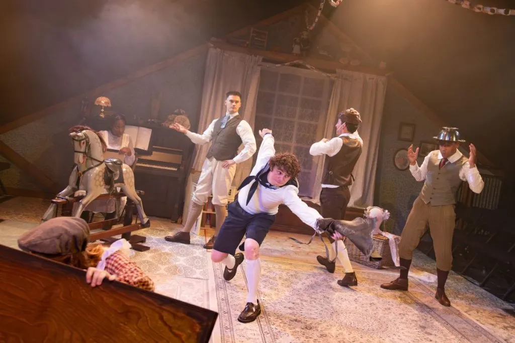 The show opens set in an early 20th century home with six children playing in their grandparents’ playroom. They decide to put on a play for their grandmother on the promise of iced buns as a treat. This is where the Shakespeare enters, the play that they devise is what we recognise as A Midsummer Night’s Dream. This adds another layer to the play within a play construct which some find hard to get their heads around. When things get a bit too wordy or over-complicated with the children playing multiple parts, the kids snap back to themselves and ask why and bicker in quite comedic fashion. These explainers work to straighten out the love triangles of the plot of A Midsummer Night’s Dream and the love spells miscast by Puck and Oberon.