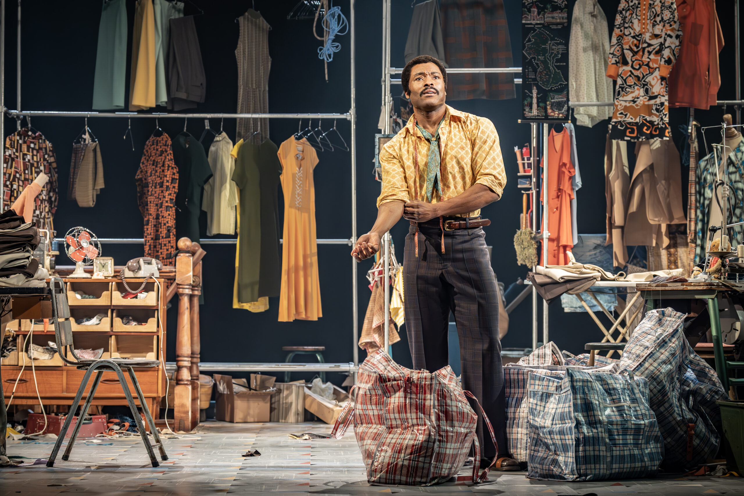 As we took our seats the preliminary action took place on stage: a man with an Afro grooved to his boom box as the world passed him by; a young kid rode around on a bike; a couple drifted through – She wasn’t happy. All this non-verbal communication set the scene for a tale of a narcissist, a street boy and a relationship on the rocks, and all this happened in Alterations, a sweat-shop tailors where Walker(Arinzé Kene) struggled to keep his business alive while he saved up to buy a shop of his own where he could do proper tailoring – making suits for the ‘trendy’. A struggle he persevered with while his life at home was falling apart.