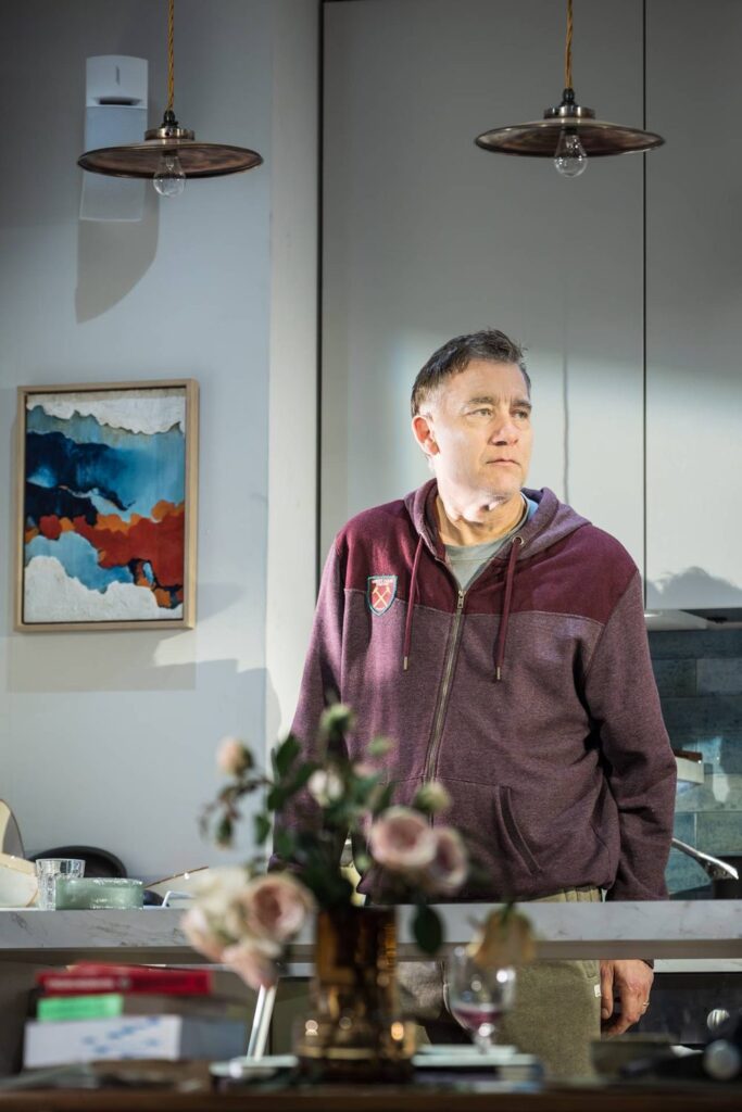 Clive Owen plays DJ Alfie, who in the early morning hours selects funeral tracks for himself. Music features strongly throughout—the play is also a nostalgic lament for the end of the 80s’ house scene. Alfie’s wife Julie, played by Saskia Reeves, begins her day on a rollercoaster of revelation as he shares his end-of-life wishes.