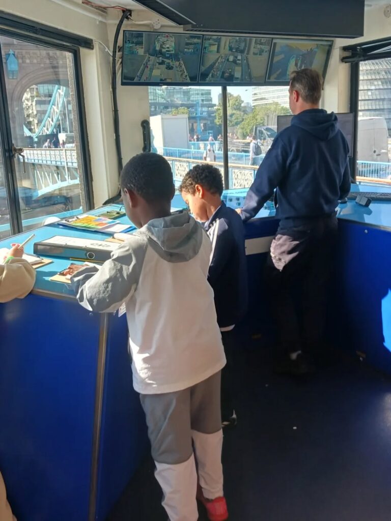 Chali, who painted the barrister, talks of being involved in criminal law ‘because I like solving problems and understanding people’s stories’. Akeem tells of the daughter at Bell & Sons butchers who wants to add ‘& Daughter’ to the shop’s name; Alexandra made a point of placing the head of Ben, the fishmonger in the Blue Market, directly next to the picture of his recently deceased father Russell, in her painting. She says she hopes it will make Ben happy. Eleanor has given blacksmith Kevin Boys four arms to signify ‘the fast hammering and shaping he has to do’. Hazimah, who painted the Kernal Brewery gave a little history of beer-making in London in his information sheet, while Evangeline explained how the trainee dentists at Guy’s Hospital practise on lifesize dummies. Aamira, kept up the history theme as she depicted the old and the new in a start-up company based in the Old Bisuit Factory. Arielle, who reveals that she is ‘super-proud’ to be involved with the project, painted the Dockhead Fire Crew but also incorporated old photos of the fire station into her artwork. Anas, very much enjoyed painting Lucy the Florist because the ‘colourful flowers made the picture really shine’, and because she learnt the importance of the florist’s job of providing flowers for many different occasions. Dibabari painted Speed Queen, a portrayal of Lizzie Huang in all her many guises and positions as a Combat Trainer/Sports Masseuse and launderer of the towels used by her clients. Kwame found out the Mayor of Southwark’s backstory while sketching him, giving another aspect of the man who now puts others first in his ‘Duty before comfort’ outlook on life. Kwame pondered being the Mayor one day and promised to respect the rights of everyone, and to provide for those in need. Leo writes of the sacrifices he made to be part of this ‘amazing project’, the mistakes he’s made on his creative journey and what he learnt to overcome them. Perhaps mirroring the ex-Boutcher mechanic who has worked at RW Autos for 35 years, Leo says he would like to ‘work in a garage and help lots of people with their cars’. He confidently told me that he was ‘very proud of himself’. Ava felt ‘very calm in the peaceful room’ at Kiana’s Beauty Clinic where she made sketches for her painting of Mimi getting her nails done. She talks of what she learnt and the painting techniques she used to create a fabric texture. Raphael Masukume Rogers-Wright had fashion designer Nat the Cat and artist John Wealleans in his painting. He provides their history and the interesting designs that filled their home, but was a bit overwhelmed by a house so big and so full of ‘colourful treasures’. Jaro the Tower Bridge Lift Driver was painted by Olivia Wang. From the group’s sketches she managed to fit in the bridge when it was opening, and the amazing buildings close to the iconic bridge. Rose Holland-Butcher painted Christopher Chessun, the Bishop of Southwark. She included items that represented Bible stories but kept the artwork contemporary by showing The Shard through a window. Gemini Saah got to visit Tower Tandoori where she was able to add more staff to her painting from the sketches to portray the busy aspect of a restaurant. She says she wouldn’t mind being a waitress because ‘if the food went wrong I would not get the blame – the manager would get shouted at!’