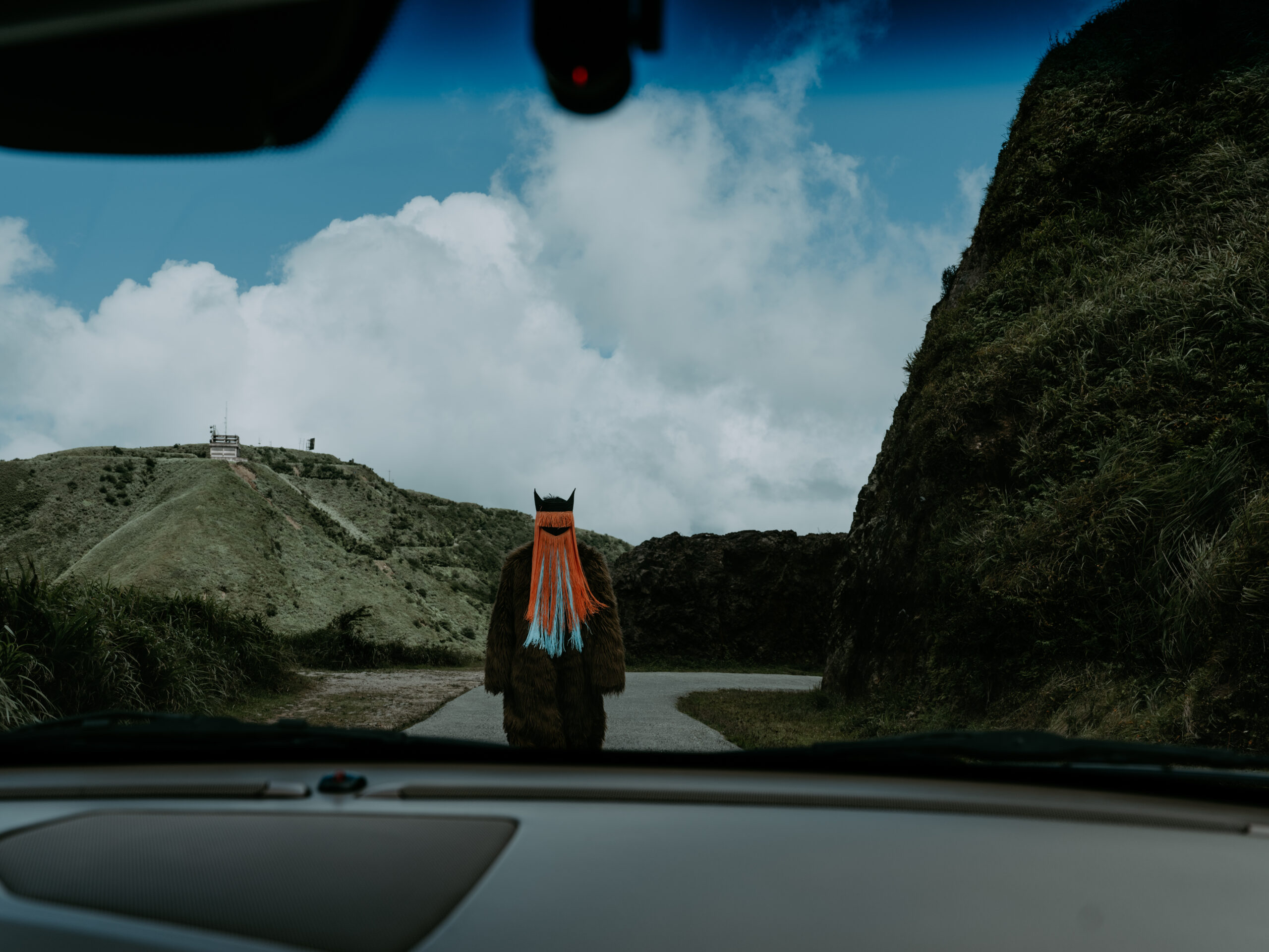 The exhibition will feature new iterations of two existing works: Valley in the Minibus (2024) and The Sorrowful Football Team (2025). Valley in the Minibus explores the concept of ‘non-places’, defined by French anthropologist Marc Augé as transitory spaces that people pass through (such as airports, motorways, shopping centres) and become anonymous. Building on the original work and live event that took place over several weekends, a group of strangers travel through a winding landscape in a van with a creature-like masked and costumed figure. A new video commission will introduce the same masked figure DJing completely alone in an anonymous space. Three full body, long haired costumes and veiled masks used in the work will also be on display as part of the installation. Present but disconnected from the audience, the presentation will highlight the artist’s interest in creating connections and intimacies through isolated experiences.