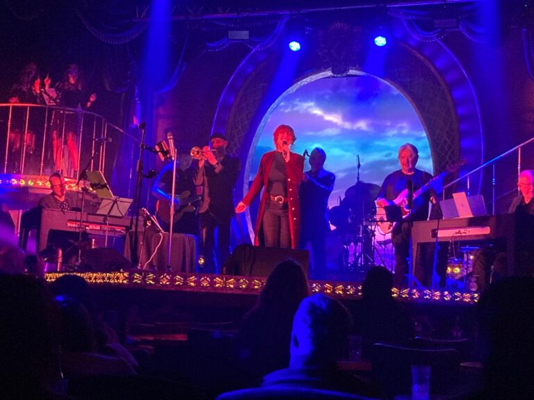 On arrival at Bromley’s Churchill Theatre a cheese and pineapple hedgehog was sitting on the bar to get us in to the mood. In the auditorium the first strains of ‘Oooooh, love to love you, Baby’ let us know that Beverley was out-out and in the mood for drinking and dancing as she welcomed her new neighbours Ange and Tone into her abode. Her husband, estate agent Laurence has some work to finish off, plus go out again to pick up house keys.