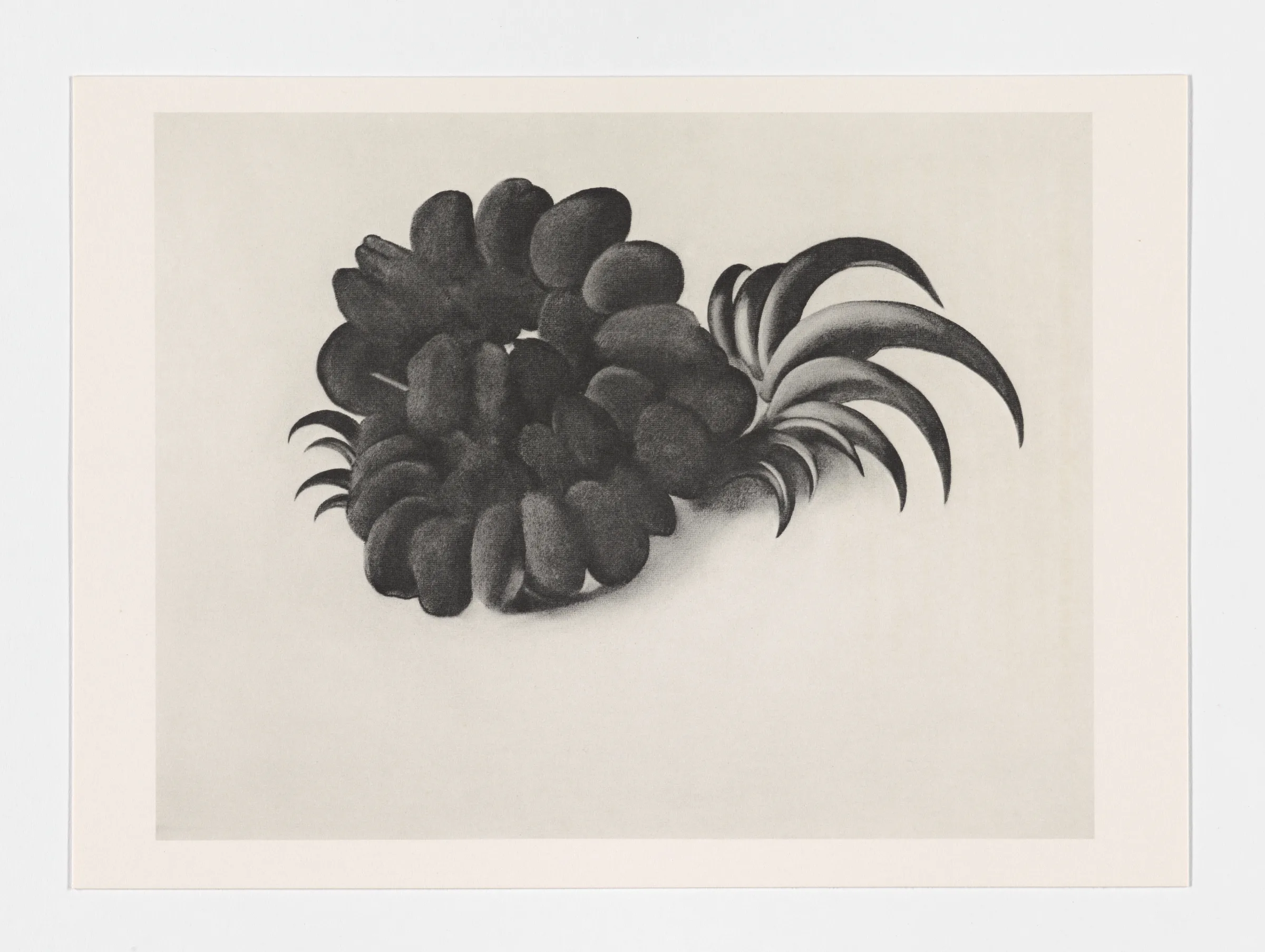The works in this display demonstrate O’Keeffe’s distinctive style and chart the key trajectories and motifs in her practice. Photogravure is a printmaking process that produces etchings with the tone and detail of a photograph through exposure onto a copper plate. The exhibition includes nine prints of her earliest charcoal abstracts alongside works originally rendered in pencil and watercolour, capturing subjects ranging from the artist’s early morning excursions with her sister, to surreal still lifes of seashells, banana flowers and animal horns. Together, these important documents reflect a formative collection that O’Keeffe produced with her agent and long-term friend Doris Bry.
