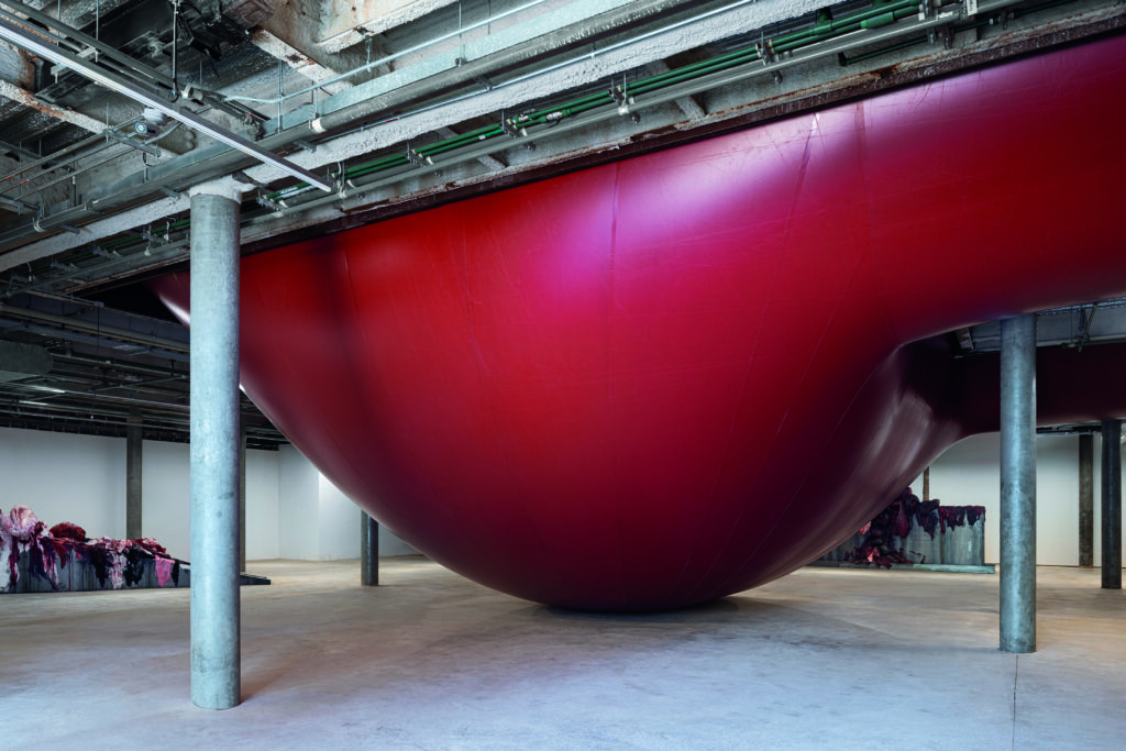 Three monumental works that defy the boundaries of conventional sculpture will be at the heart of the exhibition, each filling an entire section of the Hayward. Visitors will first explore a gallery completely transformed by a colossal and imposing new work: an inflated PVC membrane that fills the six-metre-high space, challenging our sense of scale and self. In a second new work, a dark mountainous threshold looms down amid a sprawling red landscape contained within the upper gallery. In a third section, Mount Moriah at the Gate of the Ghetto (2022) will defy gravity as it descends from the ceiling, hovering inches above the gallery’s floor tiles. Overwhelming in size and emotional intensity, these monumental works elaborate on Kapoor’s fascination with the sublime.