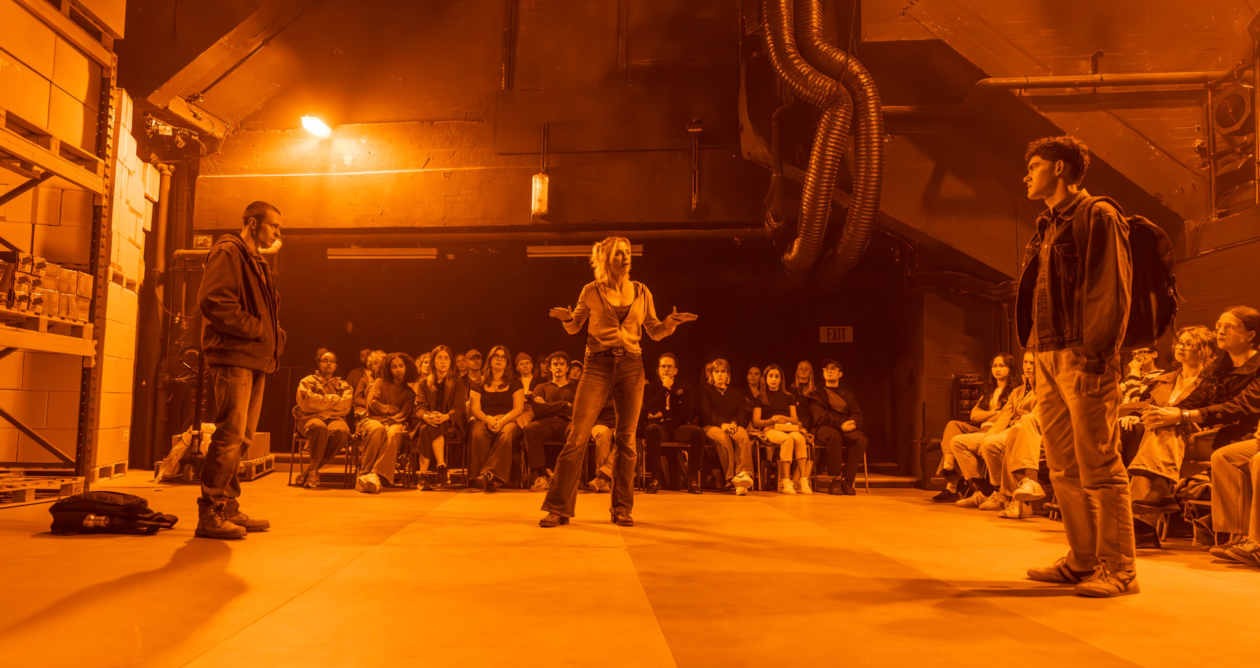 Joe Locke and Sophie Melville, as Jake and Trish respectively, handle their roles competently, but both characters feel rather two-dimensional. The standout performance comes from Ruaridh Mollica as Chris, who brings the most nuance to the text. His portrayal of emotional conflict is never overplayed and remains grounded in reality. The highlight of the production, however, is Stacey Derosier’s lighting design: harsh industrial lighting combined with an emotive colour palette breathes life into the otherwise sparse warehouse setting.