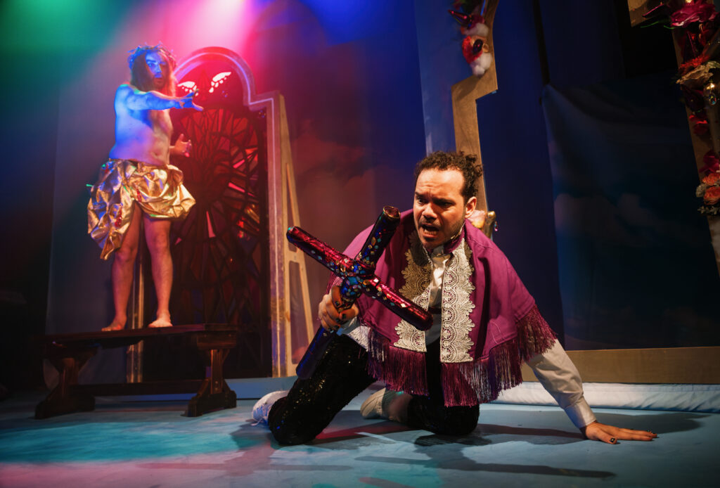 Of course, given the subject matter, this is not the kind of thing which anyone sensitive to any kind of blasphemous imagery would likely take kindly to, but it really doesn’t feel like an attack on Catholicism. Instead, the play feels more like it is a celebration of what should, at least in theory, be at the heart of religion: love. There are several genuinely touching moments, with excellent performances from Sergio Antonio Maggiolo and Guido Garcia Lueches: a recently engaged couple, their chemistry is obvious and their comedic timing perfect. Each scene is a real joy, with the sparkly, multicoloured set only enhancing a show that is already bright in every sense of the word.