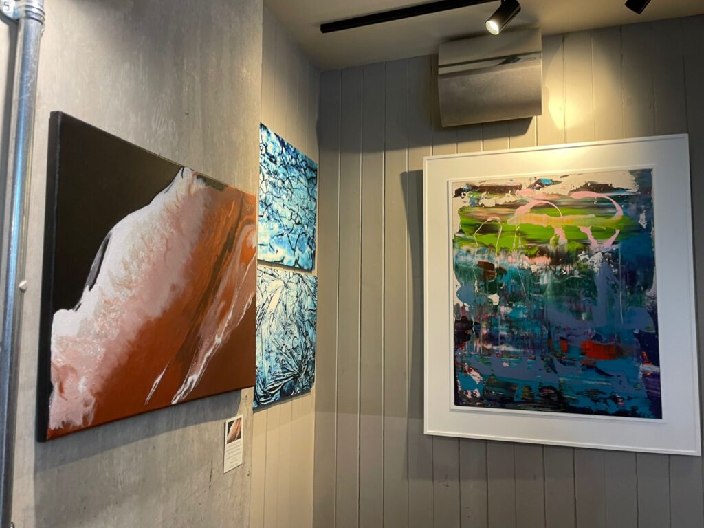 Multidisciplinary artist Zoe Ford praises Firepit’s community-led experience and points out that not all galleries support up-and-coming artists, which makes this a special opportunity for both artists and visitors. Zoe’s works in the exhibition (a mixed-media piece and a clay sculpture) both revolve around the theme of healing, inspired by her own health struggles and her journey towards wellbeing. Agnieszka Lokaj also connects art to healing – the joy of following her passion and doing something tangible. Her work celebrates resilience, especially focusing on Female Rugby players. She also echoes the other artists in praising the gallery as a place that wants to support artists.