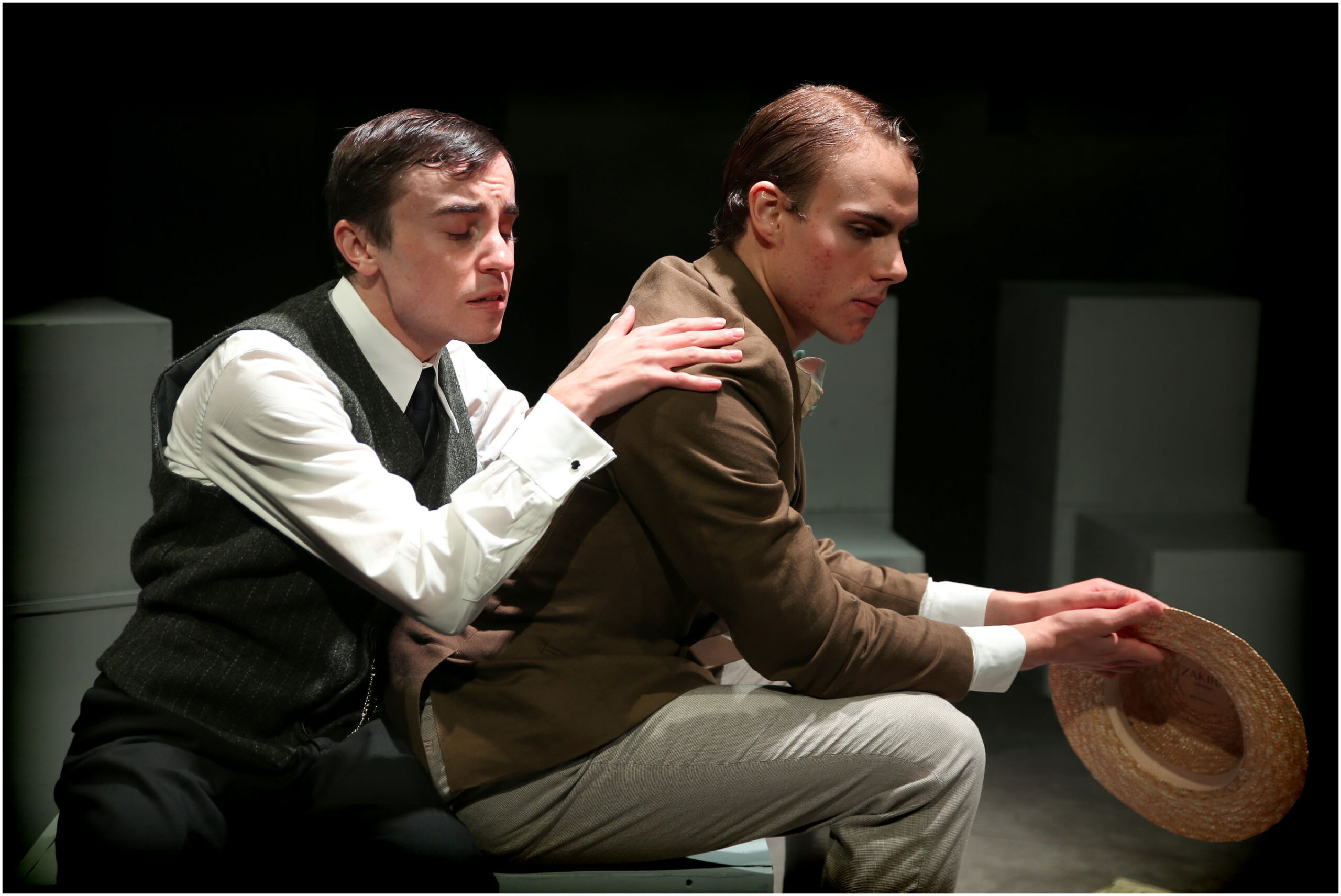 Impressive lighting by Jonathan Simpson does wonders for the story, illuminating the environment of the black stage with grey boxes, giving focus to the different scenes to great effect. Like the stage, the costumes themselves are simple references to the style of the twenties.