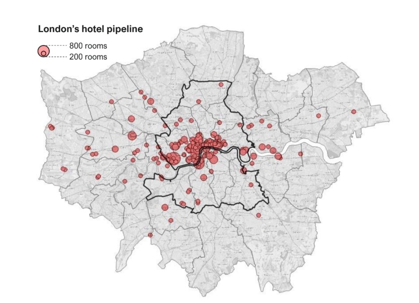 There are currently 196 hotels across in London either in planning, under construction or undergoing renovation. Together, these have the potential to deliver another 29,500 hotel rooms.